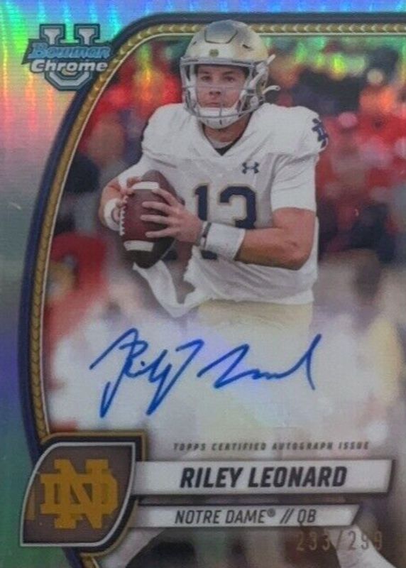 2024 Bowman University Chrome silver refractor Autograph Riley Leonard RC /299
