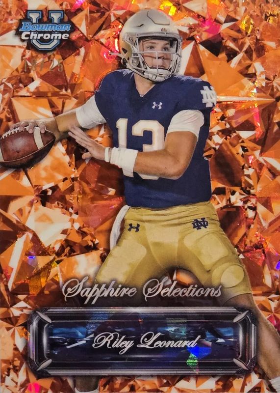 2024 Bowman Chrome U Football Riley Leonard Orange /25 Sapphire Selections Irish