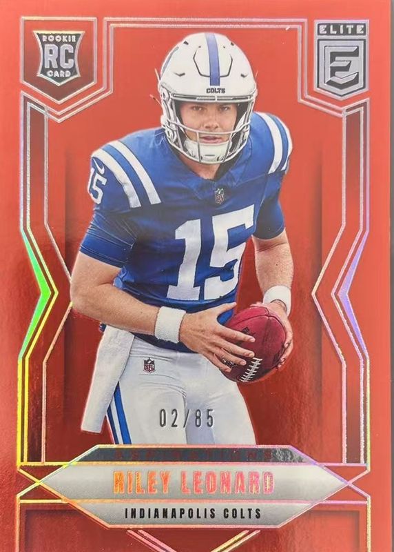 The Riley Leonard 2025 Elite #170 Aspirations (/85) Rookie card in Raw condition has not changed in price in the last 30 days and was last sold for $6.00 .