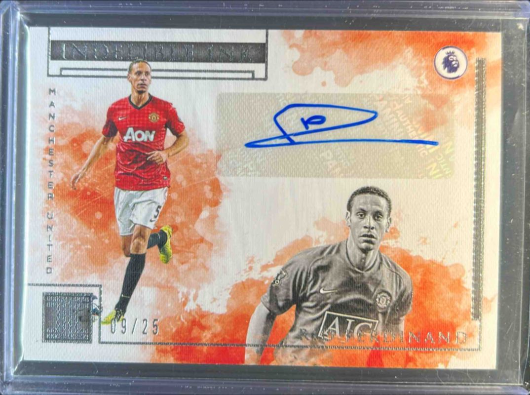 The Rio Ferdinand 2019 Impeccable Premier League #IN-RIO Indelible Ink /50 card is 1 of 15 Rio Ferdinand's card variations in the 2019 Impeccable Premier League set being tracked by Sports Card Investor, including Immortal Ink /99, All Time Legends /75, All Time Legends - Silver /25, Immortal Ink - Silver /25, and Indelible Ink - Silver /15.
