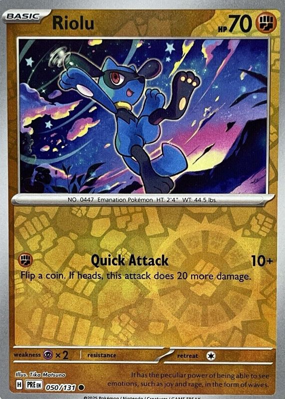 Riolu 2025 Scarlet & Violet: Prismatic Evolutions #050/131 Reverse Holo RAW TCG (LIGHTLY PLAYED) Price Guide