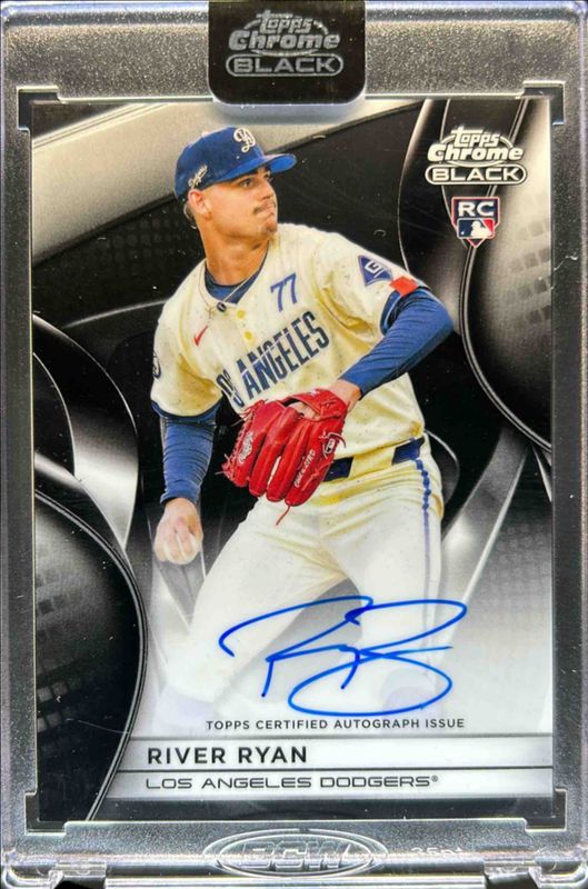 The River Ryan 2025 Topps Chrome Black #CBA-RR Autographs Rookie card is 1 of 35 River Ryan's card variations in the 2025 Topps Chrome Black set being tracked by Sports Card Investor, including Base, Refractor /199, Blue Lava Refractor /150, Blue Refractor /150, and Green Refractor /99.