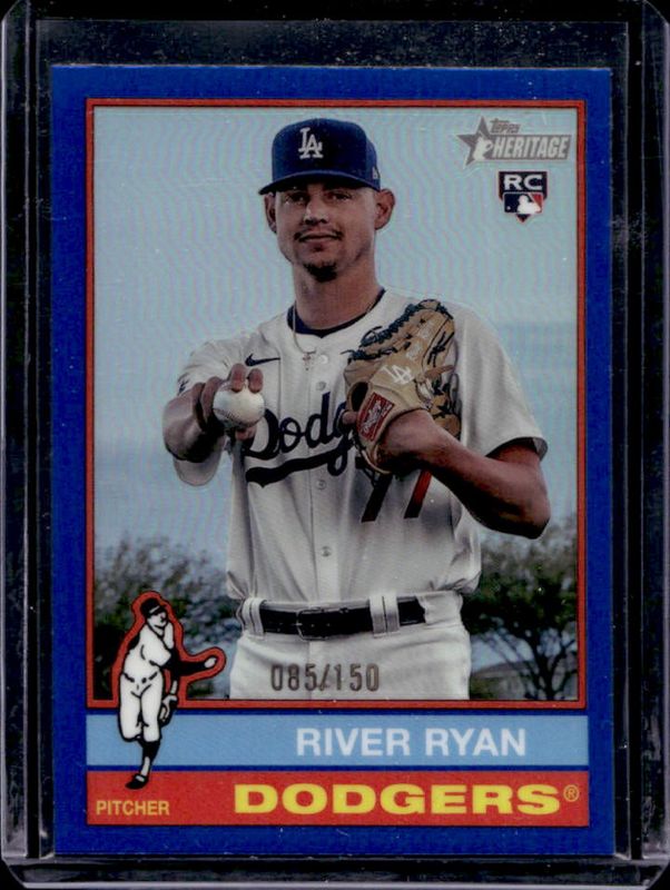 The River Ryan 2025 Topps Heritage #45 Chrome - Blue Refractor /150 Rookie card is 1 of 24 River Ryan's card variations in the 2025 Topps Heritage set being tracked by Sports Card Investor, including Base, Black Border, Dark Blue Border, Dark Green Border, and Dark Yellow Border.