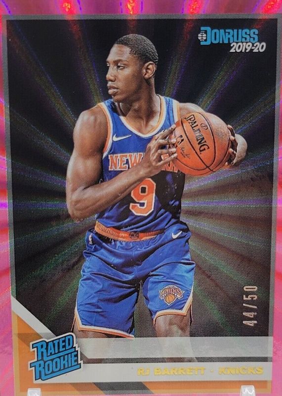 The RJ Barrett 2019 Donruss #203 Pink Laser /50 Rookie card in Raw condition has not changed in price in the last 30 days and was last sold for $4.25 .