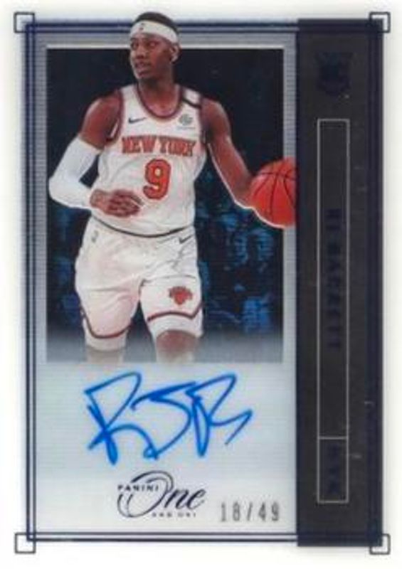 The RJ Barrett 2019 One and One #RA-RJB Rookie Autographs - Blue /49 card is 1 of 40 RJ Barrett's card variations in the 2019 One and One set being tracked by Sports Card Investor, including Base /99, Blue /25, Purple /20, Red /15, and Gold /10.