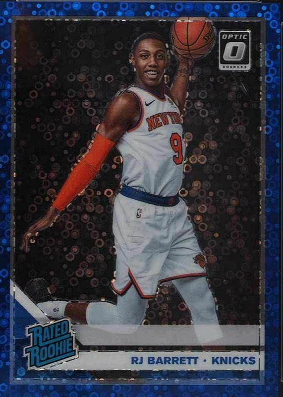 The RJ Barrett 2019 Optic #178 Fast Break Blue /50 Rookie card in Raw condition has not changed in price in the last 30 days and was last sold for $10.50 .