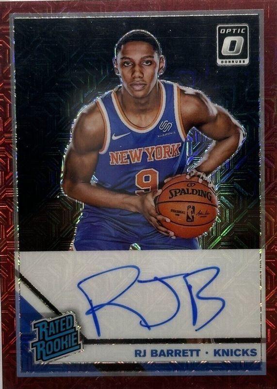 The RJ Barrett 2019 Optic #178 Rated Rookie Signatures - Choice card in Raw condition has not changed in price in the last 30 days and was last sold for $36.00 .