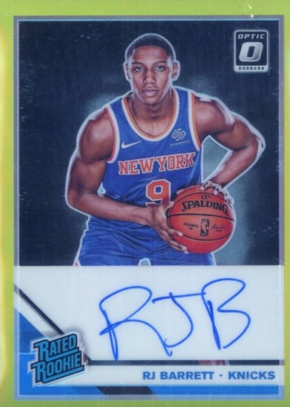 The RJ Barrett 2019 Optic #178 Rated Rookie Signatures - Gold /10 card in Raw condition has not changed in price in the last 30 days and was last sold for $392.00 .