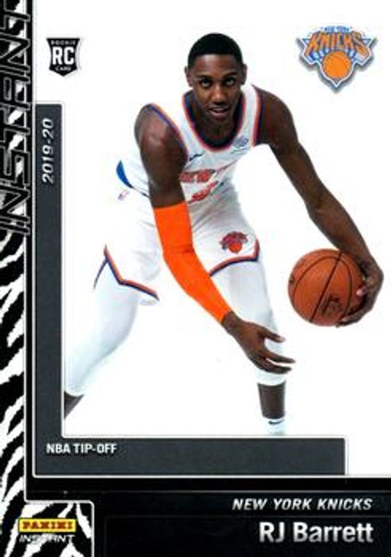 The RJ Barrett 2019 Panini Instant #11 Black /1 Rookie card is 1 of 28 RJ Barrett's card variations in the 2019 Panini Instant set being tracked by Sports Card Investor, including #25 Base, #21 Base, #11 Base, #108 Base, and #108 Yellow /88.