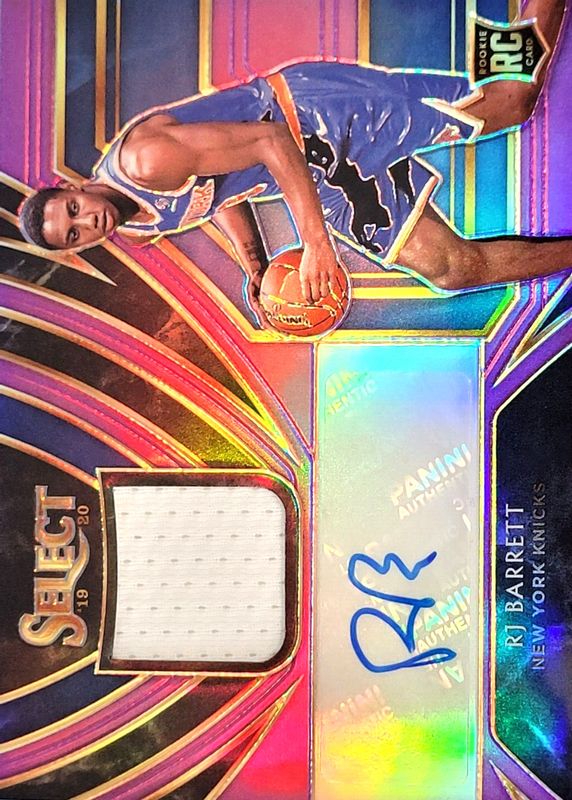 2019-20 PANINI SELECT RJ BARRETT AUTO PATCH RPA PURPLE PRIZM SP /99 RC KNICKS