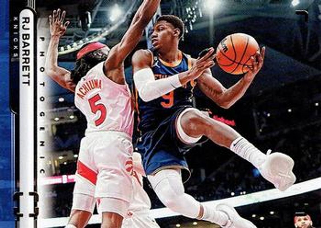 The RJ Barrett 2022 Photogenic #101 Base /999 card is 1 of 10 RJ Barrett's card variations in the 2022 Photogenic set being tracked by Sports Card Investor, including Silver /99, Diamond /75, Maze /25, Gold /10, and Platinum /1.