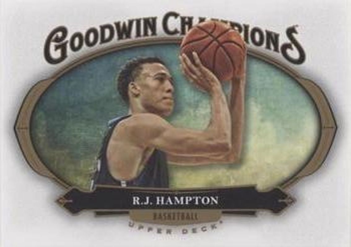 The RJ Hampton 2020 Upper Deck Goodwin Champions Blank Back card is 1 of 70 RJ Hampton's card variations in the 2020 Upper Deck Goodwin Champions set being tracked by Sports Card Investor, including #97 Base, #147 Base, #47 Base, #47 3 D Lenticular, and #47 Black & White.