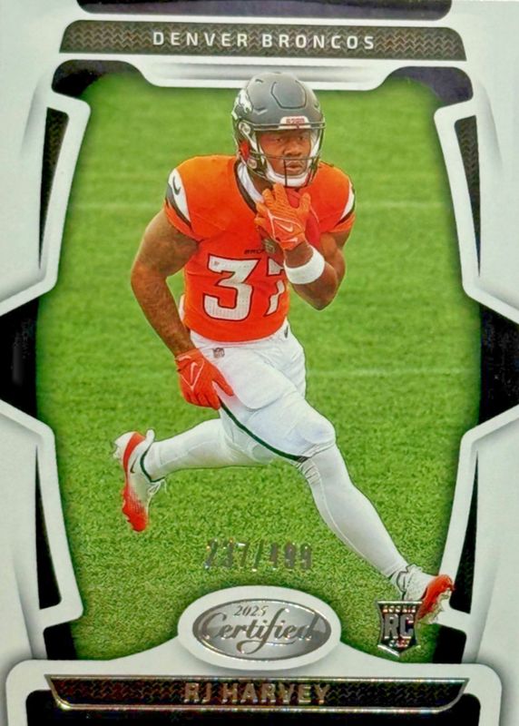 2025 Panini Certified Football #135 RJ HARVEY RC /499 Broncos