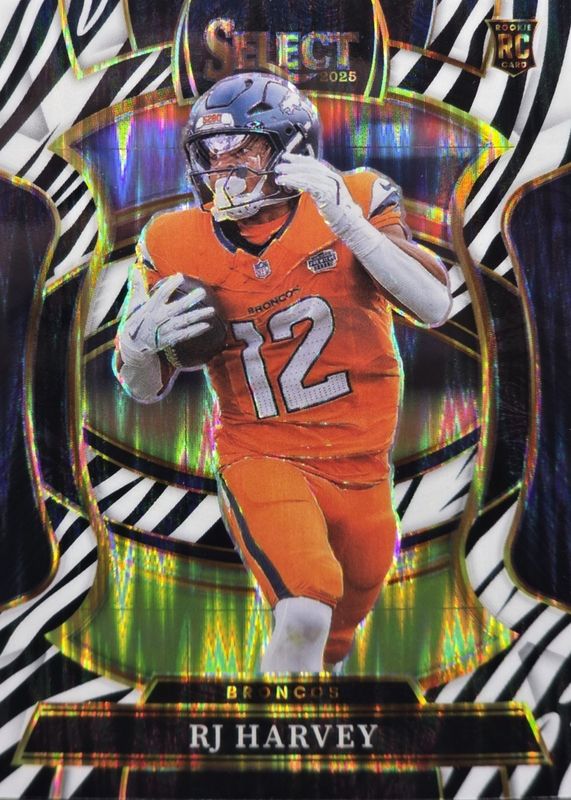2025 Panini Select RJ Harvey RC Zebra Prizm Shock #10 Concourse Broncos SSP