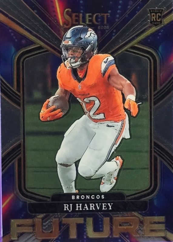 The RJ Harvey 2025 Select #5 Select Future Rookie card in Raw condition has moved down -$2.40 (-60.0%) in the last 30 days and was last sold for $1.60 .