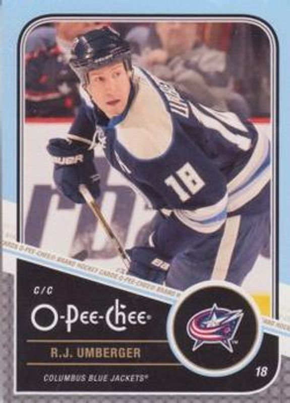 The RJ Umberger 2011 O-Pee-Chee #189 Base card is 1 of 5 RJ Umberger's card variations in the 2011 O-Pee-Chee set being tracked by Sports Card Investor, including Rainbow, Retro, Retro Blank Back, and Black Rainbow /100.