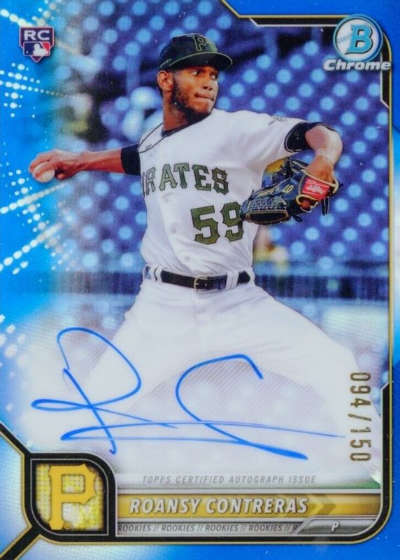 2022 Bowman Chrome ROOKIE AUTO ROANSY CONTRERAS BLUE REFRACTOR 94/150 CRA-RC