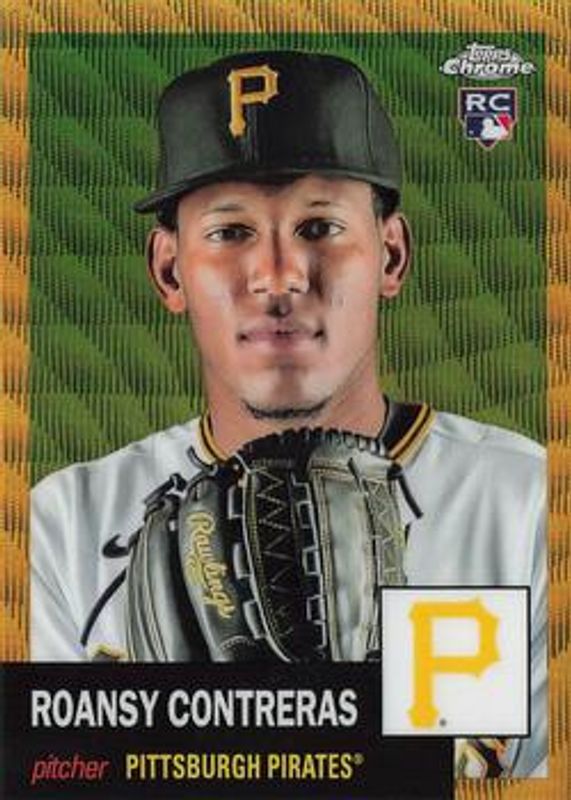 The Roansy Contreras 2022 Topps Chrome Platinum Anniversary #95 Gold Wave Refractor /50 Rookie card is 1 of 43 Roansy Contreras' card variations in the 2022 Topps Chrome Platinum Anniversary set being tracked by Sports Card Investor, including Base, Black & White Mini Diamond Refractor, Blue Prism Refractor, Gold Prism Refractor, and Prism Refractor.