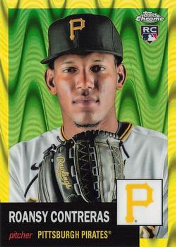 The Roansy Contreras 2022 Topps Chrome Platinum Anniversary #95 Yellow RayWave Refractor /250 Rookie card is 1 of 43 Roansy Contreras' card variations in the 2022 Topps Chrome Platinum Anniversary set being tracked by Sports Card Investor, including Base, Black & White Mini Diamond Refractor, Blue Prism Refractor, Gold Prism Refractor, and Prism Refractor.