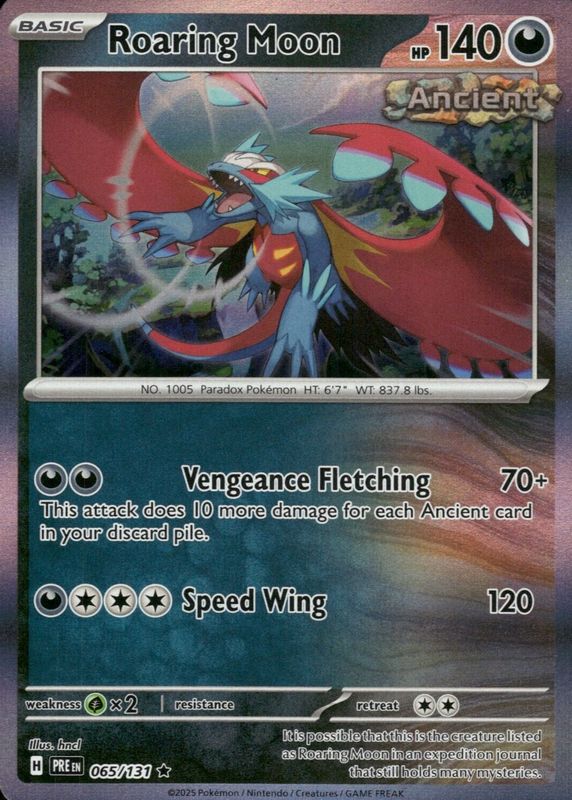 Roaring Moon 2025 Scarlet & Violet: Prismatic Evolutions #065/131 Holo RAW TCG (LIGHTLY PLAYED) Price Guide