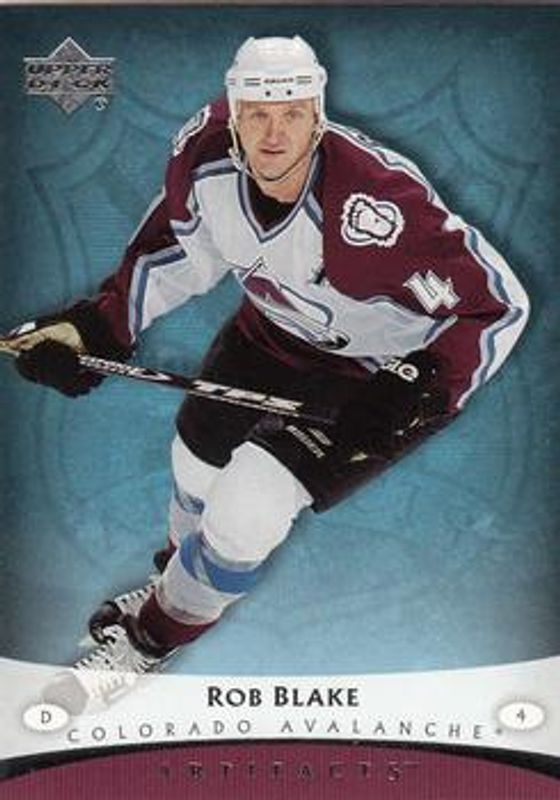 The Rob Blake 2005 Upper Deck Artifacts #25 Base /750 card is 1 of 21 Rob Blake's card variations in the 2005 Upper Deck Artifacts set being tracked by Sports Card Investor, including #159 Base /750, #25 Pewter /100, #159 Pewter /100, #25 Blue /75, and #159 Blue /75.