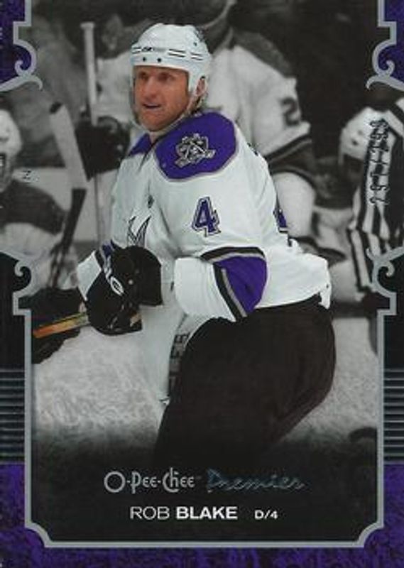 The Rob Blake 2007 O-Pee-Chee Premier #3 Base /299 card is 1 of 15 Rob Blake's card variations in the 2007 O-Pee-Chee Premier set being tracked by Sports Card Investor, including Gold /50, Silver Spectrum /35, Gold Spectrum /15, Black /1, and Stitchings /199.
