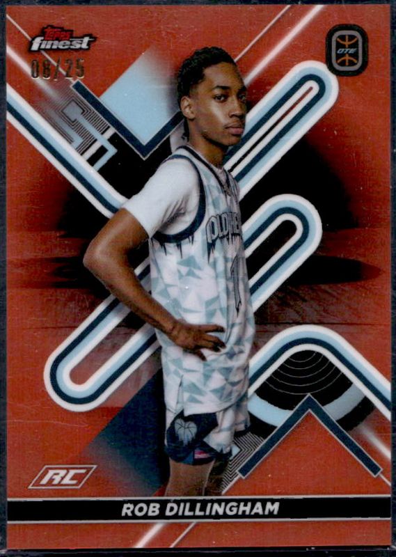 The Rob Dillingham 2022 Topps Finest OTE Overtime Elite #17 Orange Refractor /25 card is 1 of 83 Rob Dillingham's card variations in the 2022 Topps Finest OTE Overtime Elite set being tracked by Sports Card Investor, including #77 Base, #17 Base, #28 Base, #30 Base, and #30 Refractor.