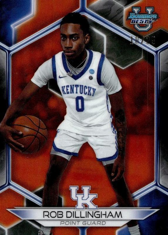 This card is 1 of 56 Rob Dillingham's card variations in the 2023 Bowman Best University set being tracked by Sports Card Investor, including Base, Refractor, Speckle Refractor, Blue Refractor /150, and Pink Lava Refractor /100.