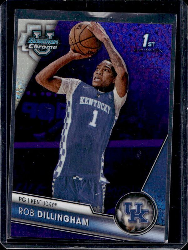 The Rob Dillingham 2023 Bowman Chrome University #44 Purple Mini-Diamond Refractor /399 card is 1 of 61 Rob Dillingham's card variations in the 2023 Bowman Chrome University set being tracked by Sports Card Investor, including Base, Pink Refractor, Purple Shimmer Refractor, Refractor, and X-Fractor.