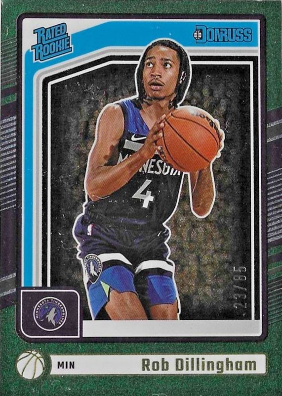 The Rob Dillingham 2024 Donruss #204 Dots /85 Rookie card in Raw condition has not changed in price in the last 30 days and was last sold for $2.49 .