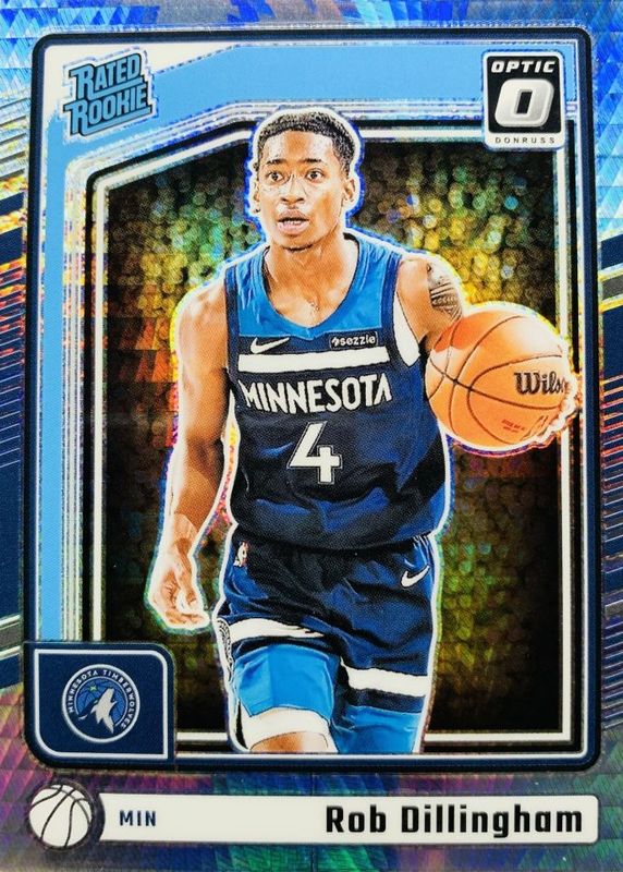 This card is 1 of 166 Rob Dillingham's card variations in the 2024 Optic set being tracked by Sports Card Investor, including Base, Blue Velocity, Checkerboard, Choice, and Fast Break.