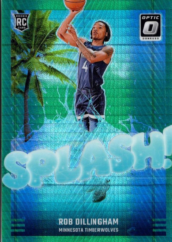 The Rob Dillingham 2024 Optic #8 Splash! - Hyper Green /249 Rookie card in Raw condition has not changed in price in the last 30 days and was last sold for $2.00 .