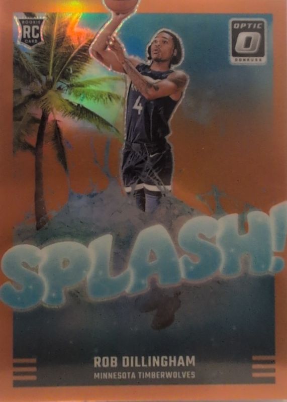 The Rob Dillingham 2024 Optic #8 Splash! - Orange /39 Rookie card in Raw condition has not changed in price in the last 30 days and was last sold for $16.49 .