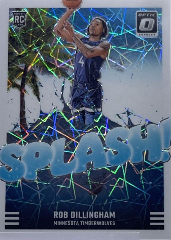 The Rob Dillingham 2024 Optic #8 Splash! - White Velocity /59 Rookie card in Raw condition has moved down -$12.75 (-85.0%) in the last 30 days and was last sold for $2.25 .