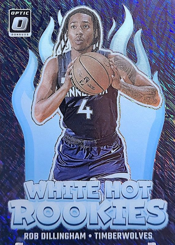 The Rob Dillingham 2024 Optic #8 White Hot Rookies - Purple Shimmer card in Raw condition has not changed in price in the last 30 days and was last sold for $1.50 .