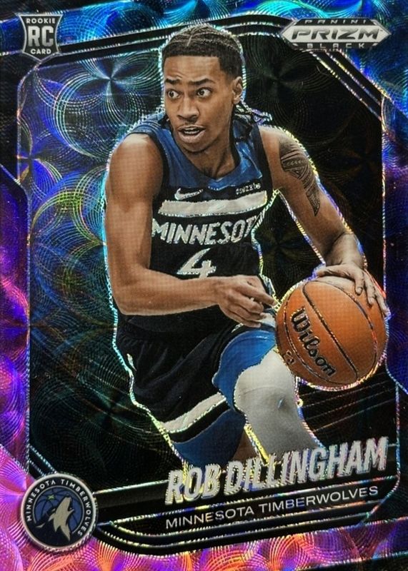 This card is 1 of 27 Rob Dillingham's card variations in the 2024 Prizm Black set being tracked by Sports Card Investor, including Base, Hyper, Pulsar, Ruby Wave, and Silver.