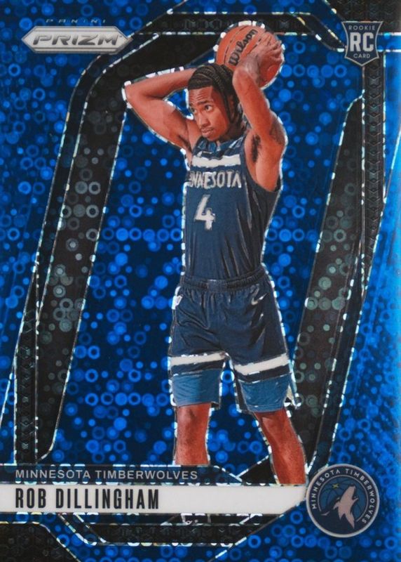 The Rob Dillingham 2024 Prizm #250 Fast Break Blue /150 Rookie card in Raw condition has moved down -$10.08 (-50.2%) in the last 30 days and was last sold for $10.00 .