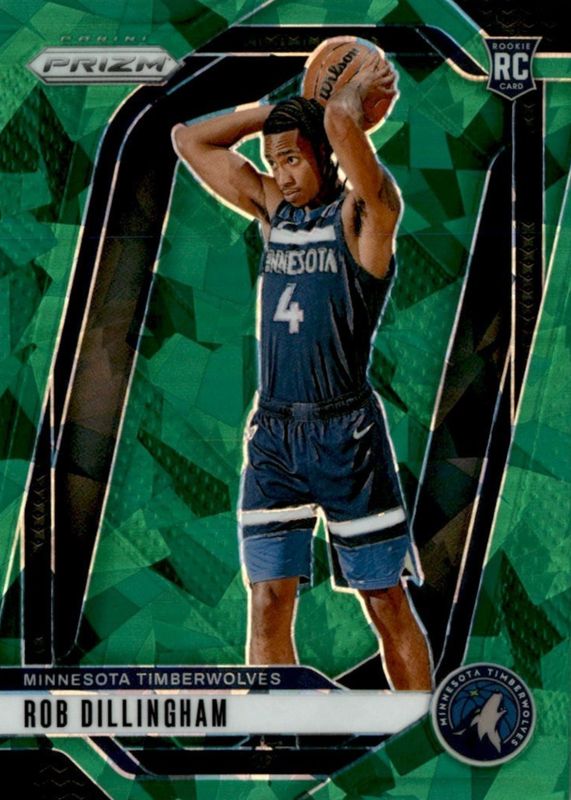 The Rob Dillingham 2024 Prizm #250 Green Ice Rookie card in Raw condition has moved down -$4.00 (-42.1%) in the last 30 days and was last sold for $5.50 .