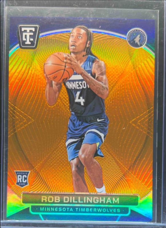 The Rob Dillingham 2024 Totally Certified #157 Orange Platinum Mirror /75 Rookie card is 1 of 83 Rob Dillingham's card variations in the 2024 Totally Certified set being tracked by Sports Card Investor, including Base, Bronze Mirror, Maroon Mirror, Purple Mirror, and Mirror.