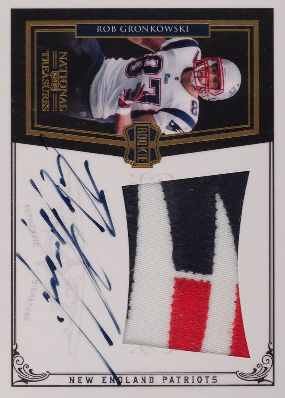 This card is 1 of 3 Rob Gronkowski's card variations in the 2010 National Treasures set being tracked by Sports Card Investor, including Rookie Patch Auto /99, and Rookie Patch Auto - Platinum /5.