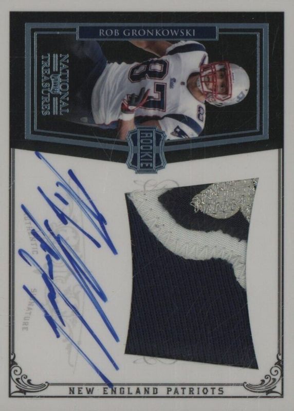 This card is 1 of 3 Rob Gronkowski's card variations in the 2010 National Treasures set being tracked by Sports Card Investor, including Rookie Patch Auto /99, and Rookie Patch Auto - Gold /25.