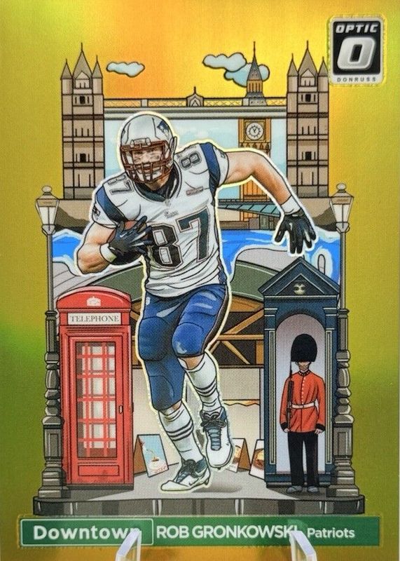 The Rob Gronkowski 2023 Optic #2 International Downtown - Gold /10 card in Raw condition has not changed in price in the last 30 days and was last sold for $2,085.94 .