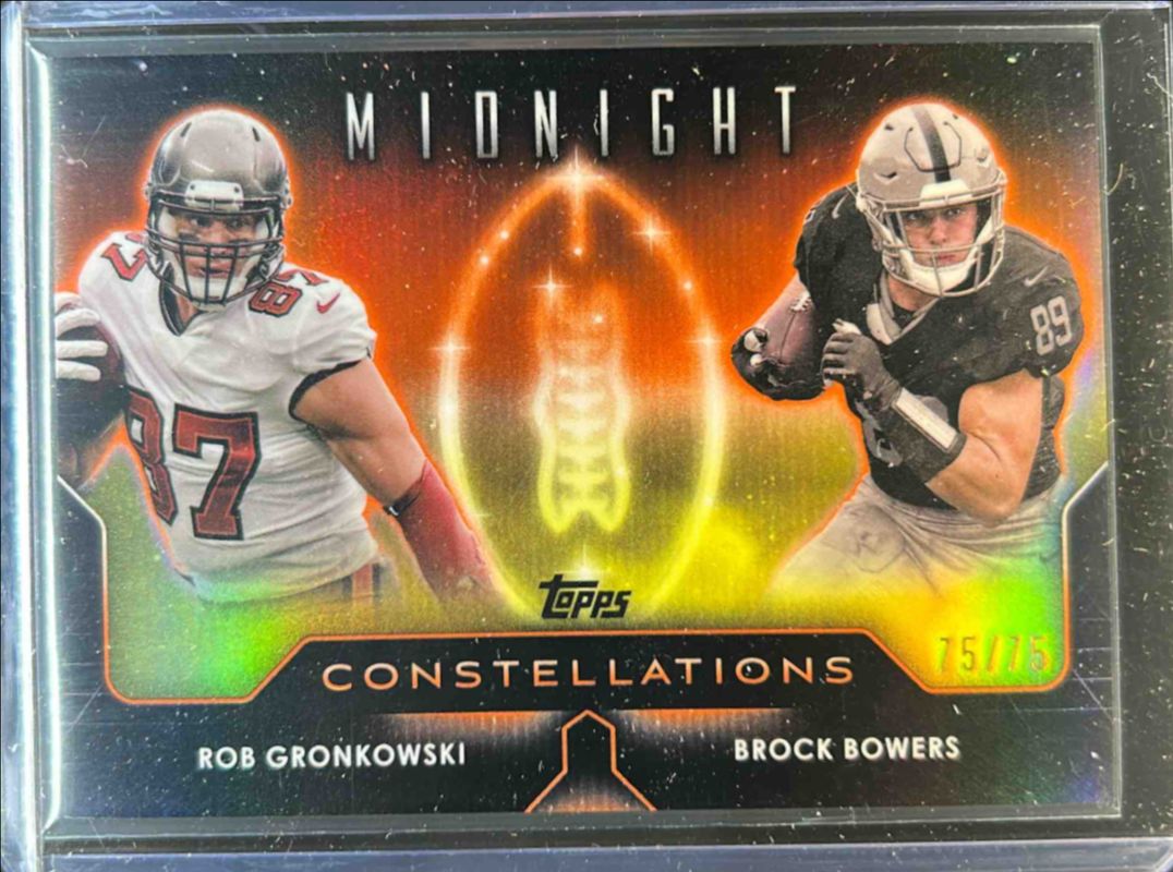 The Rob Gronkowski 2024 Topps Midnight #C-16 Constellations - Dusk /75 card is 1 of 42 Rob Gronkowski's card variations in the 2024 Topps Midnight set being tracked by Sports Card Investor, including Base, Moon Beam, Zodiac, Morning /149, and Twilight /99.