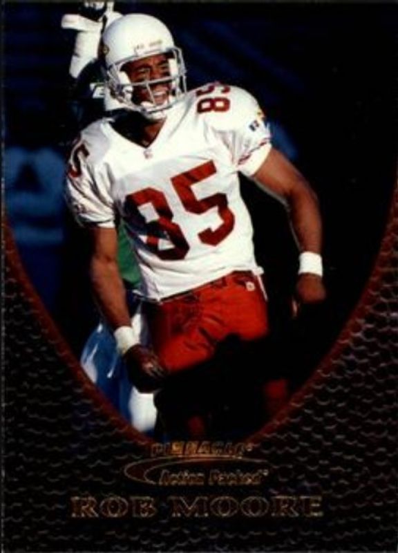 The Rob Moore 1997 Action Packed Flagship #69 Base card is 1 of 6 Rob Moore's card variations in the 1997 Action Packed Flagship set being tracked by Sports Card Investor, including First Impressions, Gold Impressions, Extra Points 10, Extra Points 100, and Extra Points Metal Die Prizes /1.