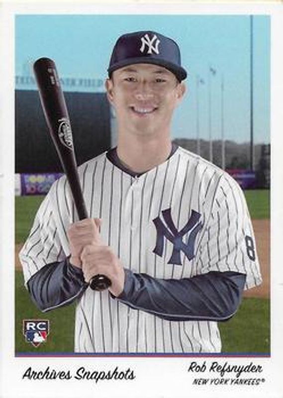 The Rob Refsnyder 2016 Topps Archives Snapshots #AS-RR Base card is 1 of 5 Rob Refsnyder's card variations in the 2016 Topps Archives Snapshots set being tracked by Sports Card Investor, including Black & White, Autographs /350, Autographs - Black & White /10, and Autographs - Negative /5.