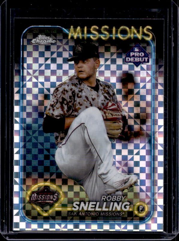 The Robby Snelling 2024 Topps Pro Debut #PDC-8 Chrome - X-Fractor card is 1 of 37 Robby Snelling's card variations in the 2024 Topps Pro Debut set being tracked by Sports Card Investor, including Base, Fuchsia Foil /199, Sparkle Foil /175, Blue Foil /150, and Green Foil /99.