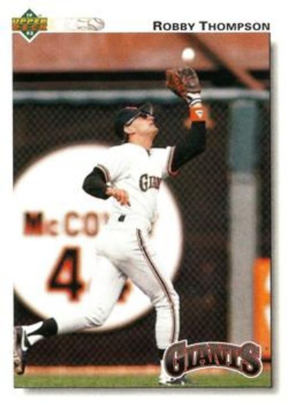 The Robby Thompson 1992 Upper Deck #286 Gold Hologram card is 1 of 2 Robby Thompson's card variations in the 1992 Upper Deck set being tracked by Sports Card Investor, including Base.