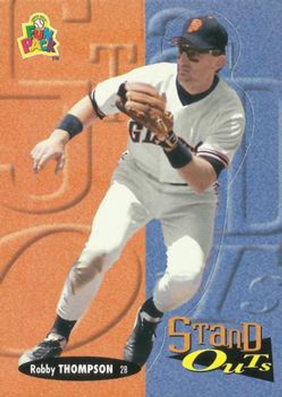 The Robby Thompson 1994 Upper Deck Fun Pack #187 Base card is 1 of 2 Robby Thompson's card variations in the 1994 Upper Deck Fun Pack set being tracked by Sports Card Investor, including Base.