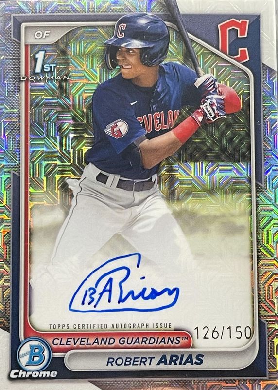 Best Prices Available For Sale of Robert Arias 2024 Bowman Chrome #CPA-RA Prospect Auto - HTA Choice Refractor /150 (1st)