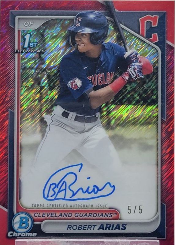 Robert Arias 2024 Bowman Chrome #CPA-RA Prospect Auto - Red Shimmer Refractor /5 (1st) RAW Price Guide